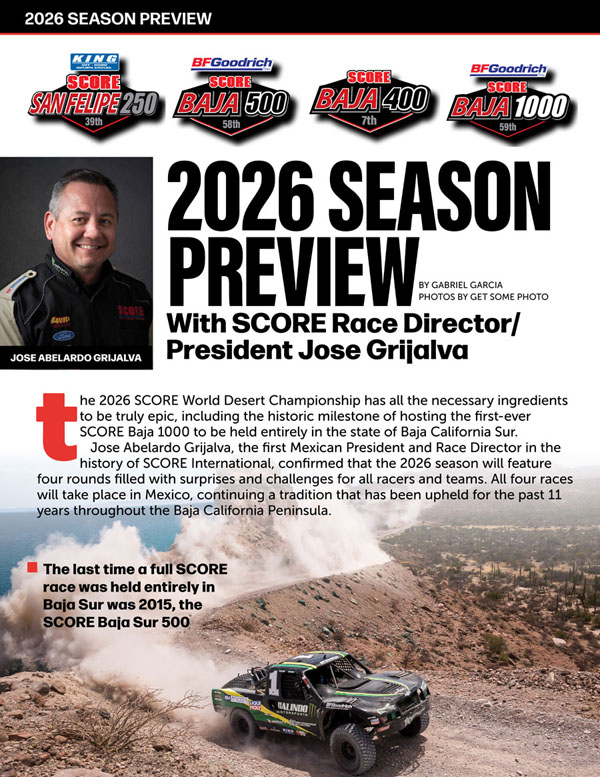 También será el aniversario 53 de SCORE International como la organización que lidera el Off-Road, misma que ha atraído a millones de corredores, medios de comunicación, equipos de competencia y fans a lo largo de su historia, incluidas celebridades de Hollywood, televisión, otras modalidades del motociclismo y automovilismo a nivel mundial, así como atletas de otros deportes, como el beisbol, surfing y futbol.